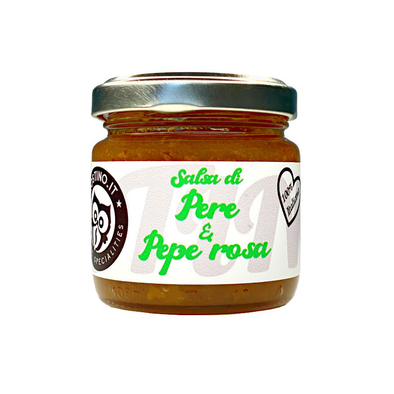 La salsa di pere e pepe rosa, grazie al suo sapore dolce e un po' pungente, si sposa perfettamente con tutti i tipi di formaggi, da quelli freschi a quelli stagionati.